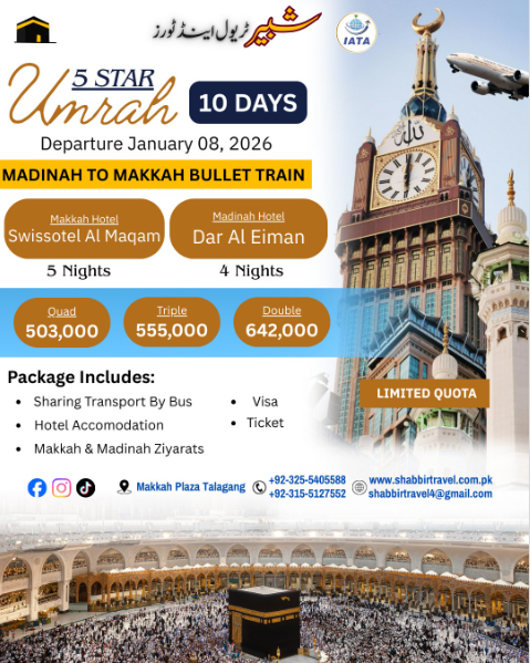 🕋 5 اسٹار عمرہ پیکیج – 10 دن ✨